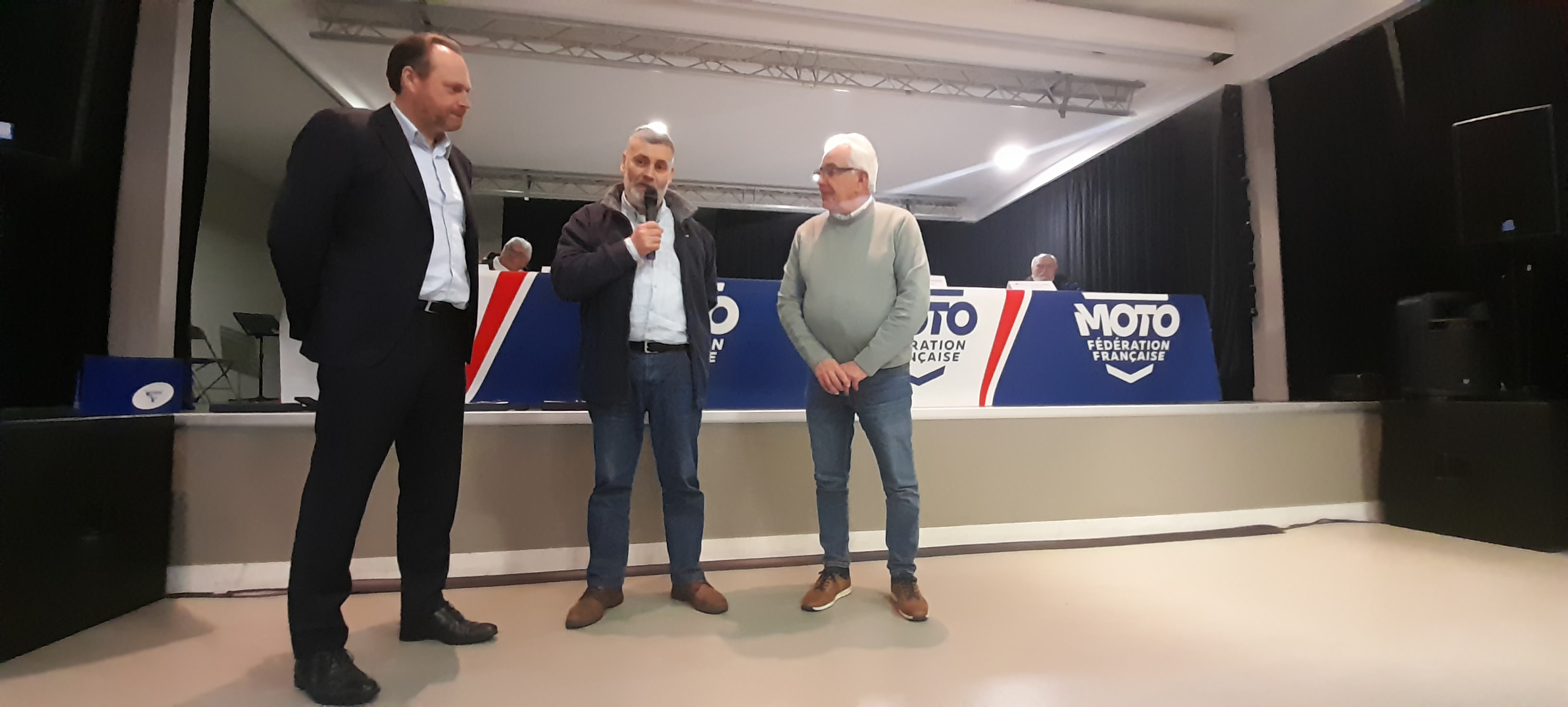 Cette Assemblée a notamment été l'occasion de récompenser trois de nos bénévoles pour leurs services rendus au sport moto : Philippe DUCROS - Commissaire Technique, Gérard APARICIO - Président de la Commission de Trial IDF et Jean LESCURE - Président du Comité Motocycliste Départemental de Paris et Président du Paris Moto Club. Ces piliers de nos organisations ont reçu la médaille de la FFM que le Président de la Fédération, Monsieur Sébastien POIRIER, est venu lui-même leur remettre. La Ligue Motocycliste d'Ile de France leur transmet une nouvelle fois ses félicitations et ses remerciements pour leur engagement au service de l'intérêt général.